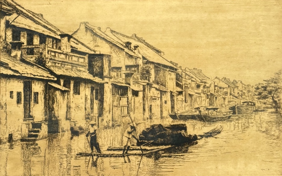 914. Ets, Dirk Homberg – gezicht Oud-Batavia Kali Besar, ca. 1925